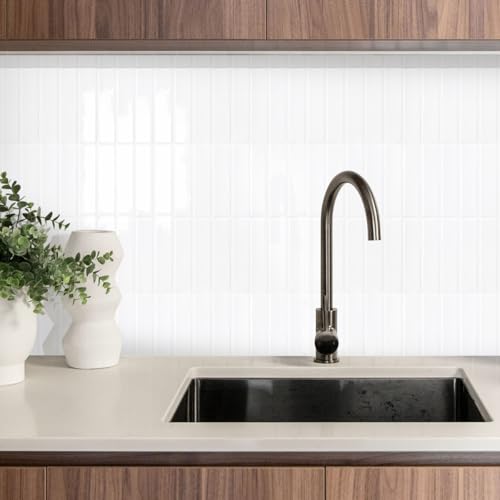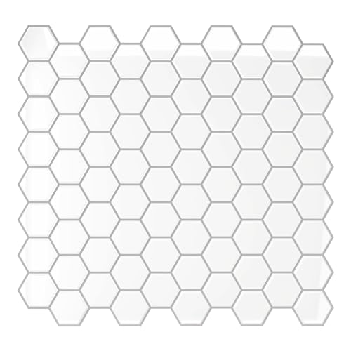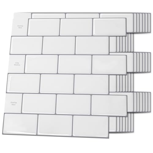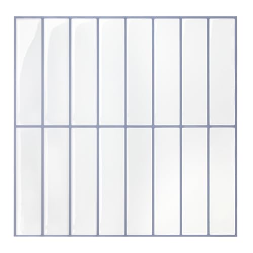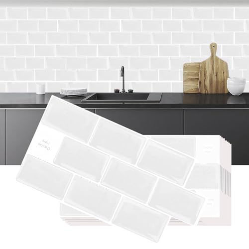 Alwayspon 10 ark vit 3D vinyl kakel klistermärke överföringar, tjockare skala av och klistra fast, vattentät, stänkskydd, självhäftande självhäftande kakeldekaler för kök badrumsvägg, 30 cm x 13 cm