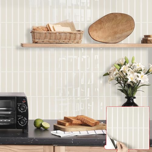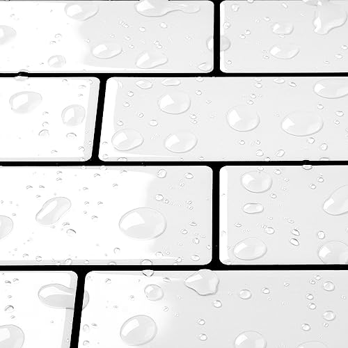Yoillione Uppgradera tjockare skala av och klistra på väggplattor stänkskydd för kök och badrum, metro tunnelbana kakel självhäftande kakelklistermärken 3D självhäftande kakel stänkskydd vit, 10 ark