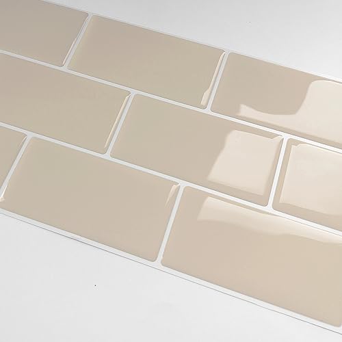 Commomy 3D kakeldekaler självhäftande kakel kök badrum beige vinylkakel självhäftande köksvägg Metro väggplattor självhäftande kakelfolie (10 stycken, 30,5 x 30,5 cm)
