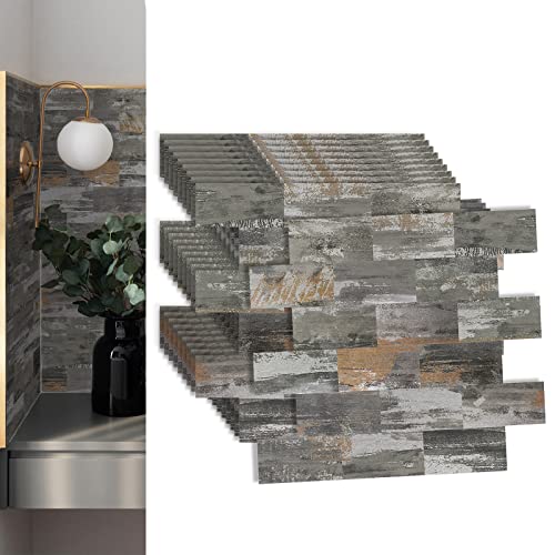 Yoillione Uppgradera tjockare skala av och klistra på väggplattor stänkskydd för kök och badrum, metro tunnelbana kakel självhäftande kakelklistermärken 3D självhäftande kakel stänkskydd grå, 10 ark