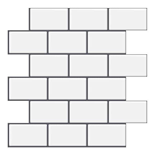 Yoillione Upgrade tjockare 3D kakeldekaler för badrum kök, självhäftande kakel vinylkakel självhäftande kakelfolie, vit PVC metro plattor självhäftande (10, vit)