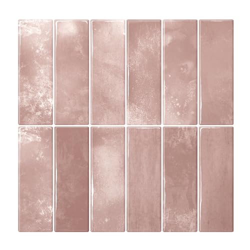 VEELIKE Rosa väggplattor självhäftande självhäftande kakel kök bakvägg 3D kakelklistermärken badrum kakelfolie badrum rosa kökskakel klistra fast tvättstugor avtagbara 30,5 cm x 30,5 cm 6 stycken