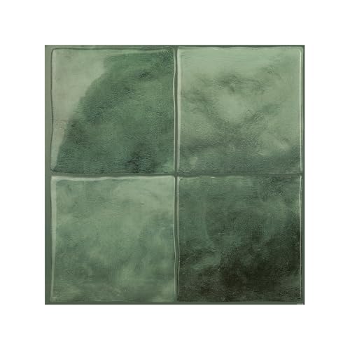 WoStick 3D självhäftande kakelklistermärken i full storlek, 10 ark, vintage gröna självhäftande väggplattor, full storlek, kakelklistermärken, skala av och klistra fast kakel stänkskydd för kök badrum