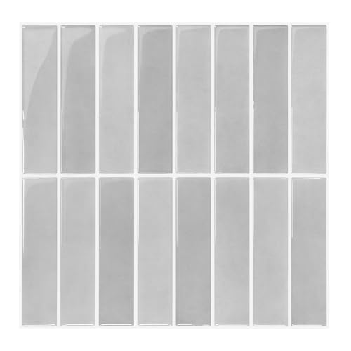 Yoillione Upgrade tjockare 3D kakeldekaler klistermärken för badrum kök, självhäftande kakel vinylkakel självhäftande kakelfolie, vit PVC metro plattor självhäftande (10, grå)