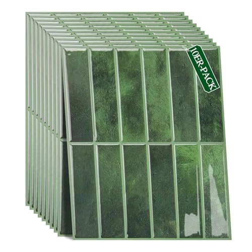 10 självhäftande 3D Backsplash Kakel, Green Sticker Kök Stänkskydd, Självhäftande Kakel, Självhäftande Väggbeläggning, Badrumsplattor för Badrum, Kök (C)