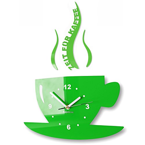 TASSE tid för kaffe modern kök väggklocka, 3D romersk, väggklocka deko (grön)
