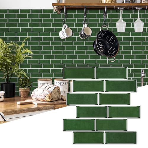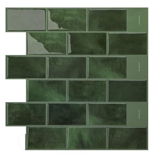 WoStick grön självhäftande kakel kök, 3D skala och stick plattor med vintage textur, lätt att rengöra rektangel Subway självhäftande kakel för kök badrum, 30,5 x 30,5 cm 10 ark
