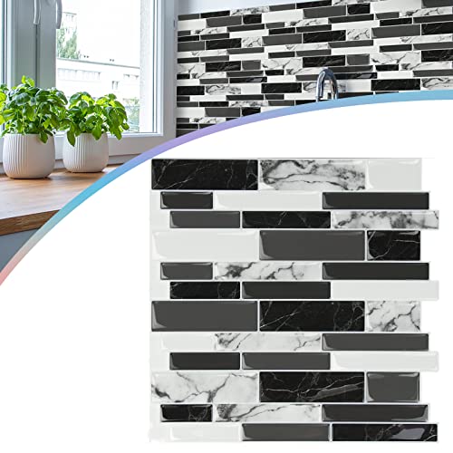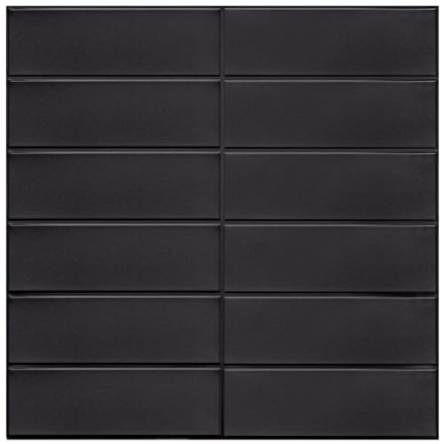 Yoillione Uppgradering tjockare skala av och klistra fast väggplattor stänkskydd för kök och badrum, metro tunnelbana kakel klistermärken 3D självhäftande kakel stänkskydd svart, 10 ark