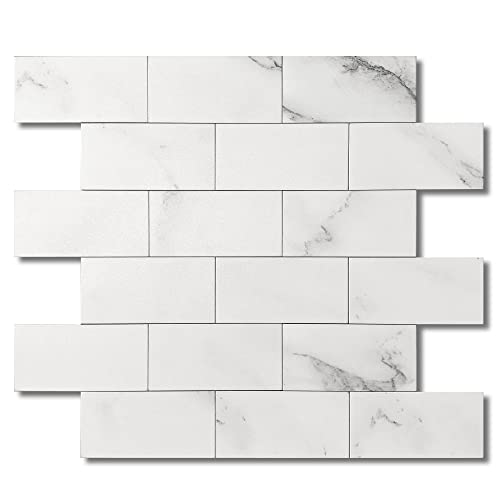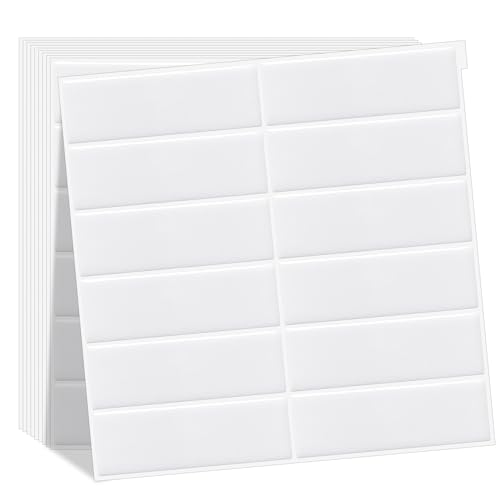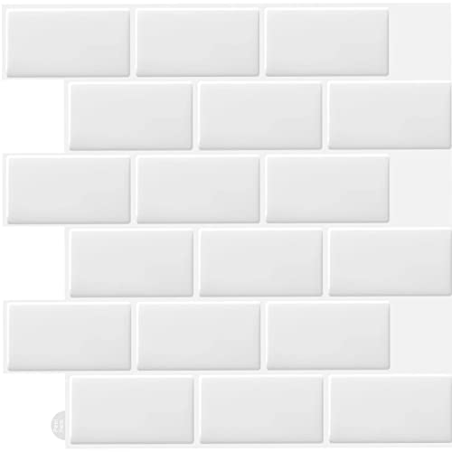 Yoillione Uppgradera tjockare skala av och klistra på väggplattor stänkskydd för kök och badrum, metro tunnelbana kakel självhäftande kakelklistermärken 3D självhäftande kakel stänkskydd vit, 10 ark