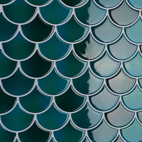 CRE8TIVE Självhäftande kakel fiskfjällsskrap 16 stycken 30,5 cm x 30,5 cm glänsande väggplattor självhäftande gröna självhäftande plattor kök 3D effekt kakelfolie kakelfolie badrum vattentät för