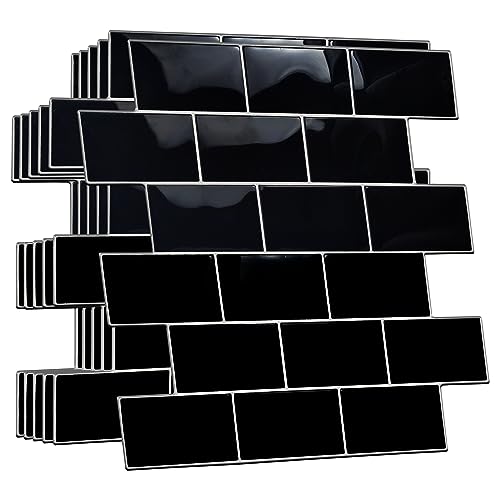 Yoillione Uppgradering tjockare skala av och klistra fast väggplattor stänkskydd för kök och badrum, metro tunnelbana kakel klistermärken 3D självhäftande kakel stänkskydd svart, 5 ark