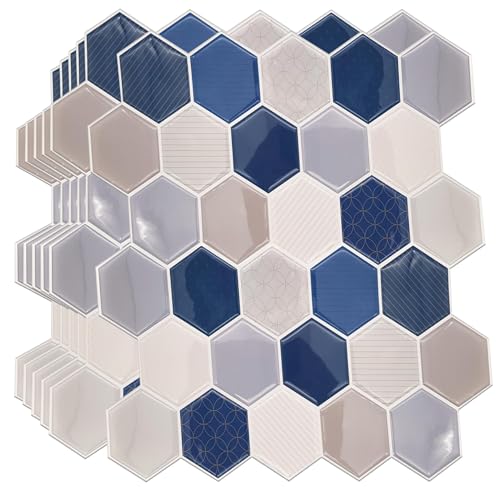 WALPLUS 12 ark honung hexa blå och gräddfärgad glansig 3D hexagonala kakelklistermärken 30 x 15 cm vägg stänkskydd vinylpinne på plattor stänkskydd skala och klistra badrum kök dekor kakelfärg