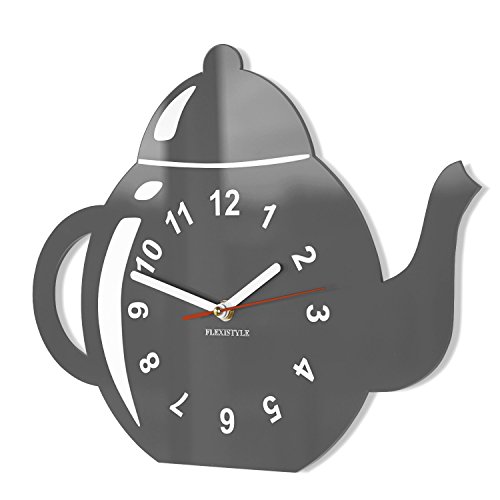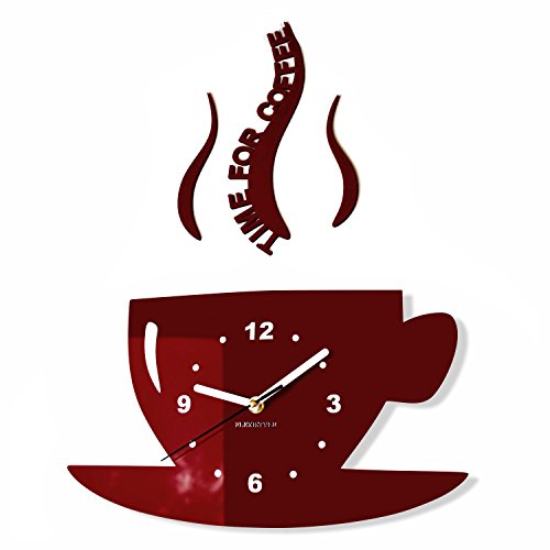 FLEXISTYLE Kopp tid för kaffe (tid för kaffe) modernt kök väggklocka röd, 3D romersk, väggklocka dekoration