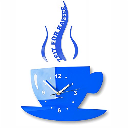 TASSE tid för kaffe modern kök väggklocka, 3D romersk, väggklocka deko (blå)