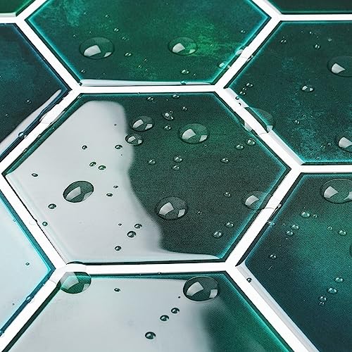 Livelynine 16 Delar Självhäftande Grön Hexagon Väggplattor 30,5X30,5 cm - Vattentät Marmor Kakel för Badrum och Kök - 3D Klistermärke Backsplash