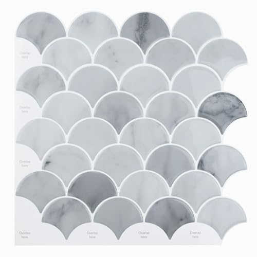 Yoillione Uppgradera tjockare skala av och klistra på väggplattor stänkskydd för kök och badrum, metro tunnelbana kakel självhäftande kakelklistermärken 3D självhäftande kakel stänkskydd grå, 10 ark