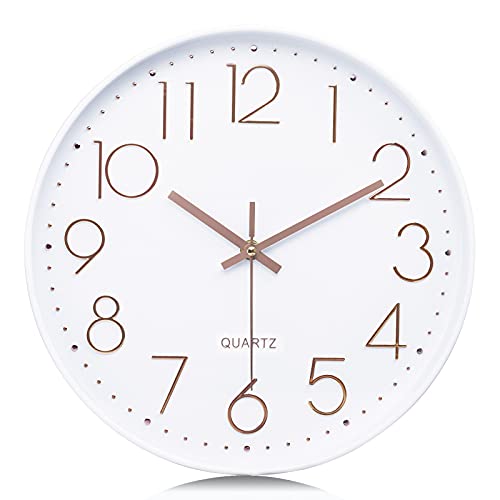 Lafocuse Tyst Modern 30cm Rund Roséguld och Vit Väggklocka med 3D Arabiska Siffror utan Tickande Väggur Dekoration för Kontor Kök Sovrum Vardagsrum