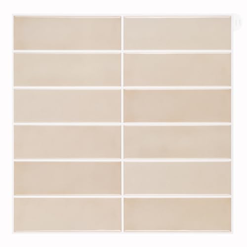 WoStick Kakeldekaler för köksvägg, 10 stycken, självhäftande kakelfolie med 3D-effekt, för kök och badrum, beige (30,5 x 30,5 cm)