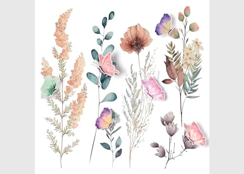 Akvarellblommor 3D-kök, vardagsrum, kontor, sovrum väggklistermärken, väggtatuering, dekaler av AG Design 30 x 30 cm | SSA 3922