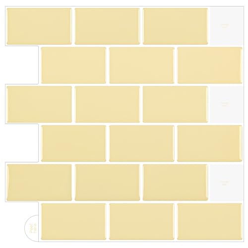 WoStick 10 stycken gula kakeldekaler köksvägg kakel självhäftande kakel kakelfolie 3D självhäftande kök badrum (30,5 x 30,5 cm)