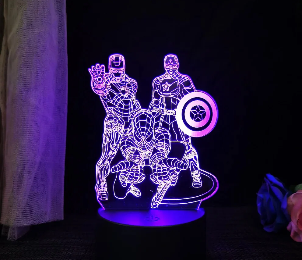 Dekorativ 3D Marvel lampa med 7 Färger, Skiftande Ljus och Lång Batteritid - 3D Lampa