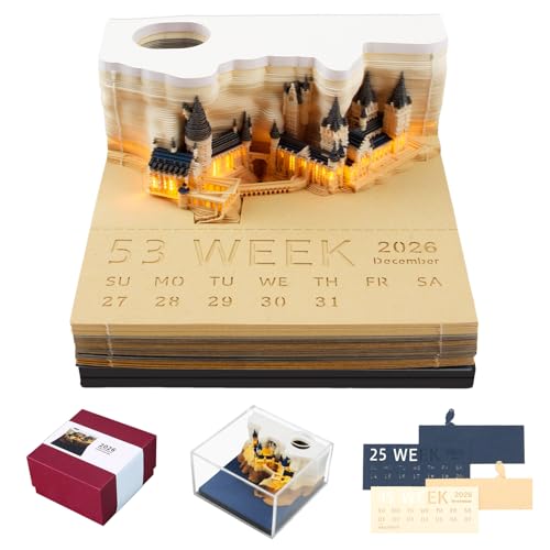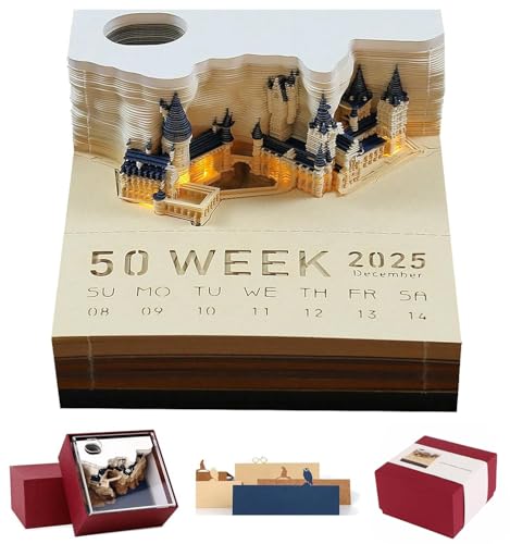 AVCXEC 3D-kalender rivning 2025, 3D-skrivbordskalender 2025, 3D-kalender med lampor, 3D Memo Pad kalender, kreativ 3D-skrivbordskalender 2025, pappersskulptur gåva, 3D anteckningsblock kalender 2025