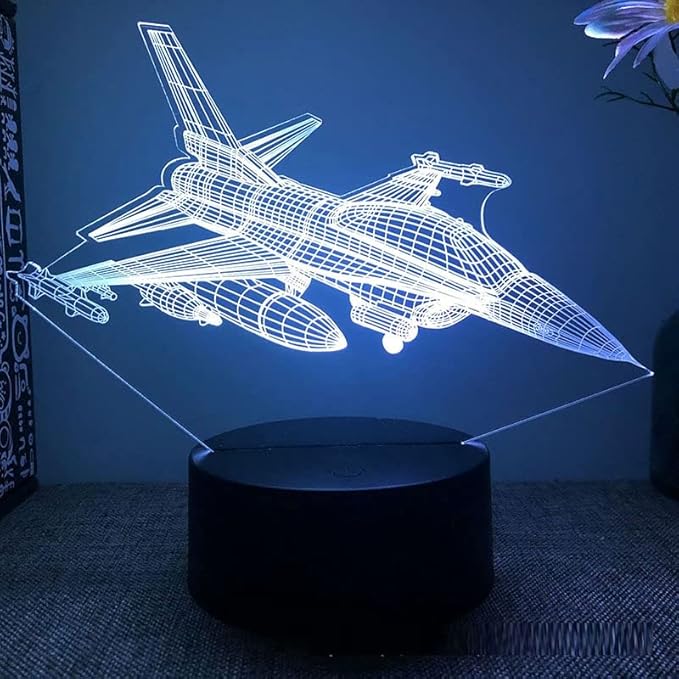 Dekorativ 3D stridsflygplan med 7 Färger, Skiftande Ljus och Lång Batteritid - 3D Lampa