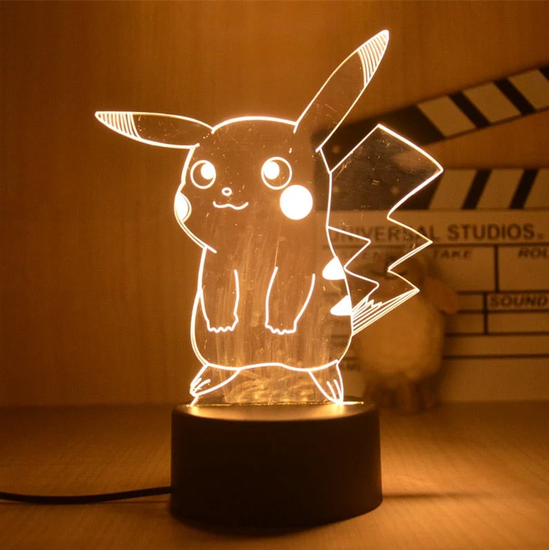 Dekorativ 3D Pokémon Lampa av pikachu 7 Färger, Skiftande Ljus och Lång Batteritid - 3D Lampa