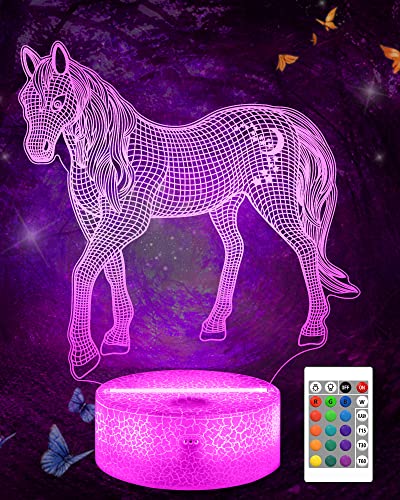Häst 3D Illusion Lampa,Attivolife Häst Natt Ljus med Fjärrkontroll + Timer 16 Färgbyte Skrivbord Lampor Barn Djur Rum Dekor Ansluta Bäst Häftigt Festival Födelsedag Gåvor för Pojkar Män Barn