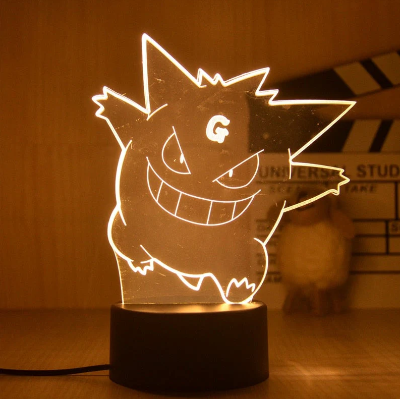 Dekorativ 3D Pokémon Lampa av Gengar 7 Färger, Skiftande Ljus och Lång Batteritid - 3D Lampa