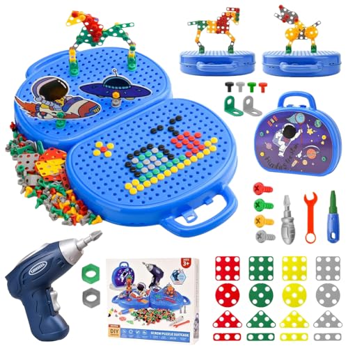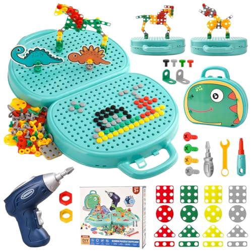 Ark miido mosaik plug-in spel verktygslåda med borrmaskin sladdlös skruvdragare, skruvar plug-in spel barnverktyg 3D pussel Montessori leksak från 3 4 5 6 år för pojkar flickor