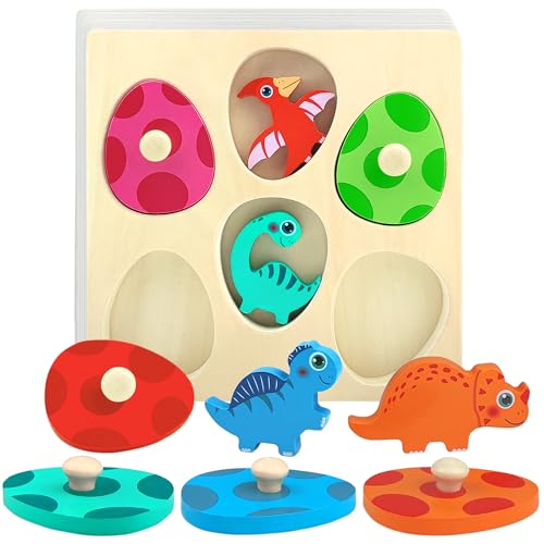 VingaHouse Montessori leksak, 3D-barnpussel, dino, ägg, träleksaker, träpussel från 1 år, grippussel, motorikleksak, sorteringsspel, födelsedag, påsk, present för flickor, pojkar, barn