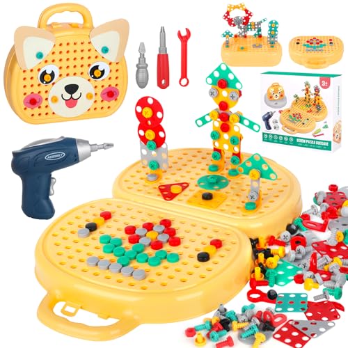 Magic Montessori Play Toolbox, Montessori leksakslåda med borrmaskin Montessori leksak från 3 år, 3D-pussel, mosaik, leksak, kreativ, verktygslåda med borr för barn från 3–12 år, hund