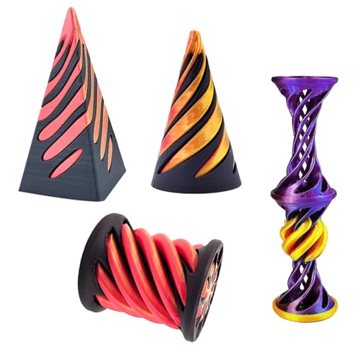 4 stycken Spiral Cone Fidget Leksak Kotte Omöjligt 3D-tryckt pyramidskulptur Leksak Spiral Pinball Anti-Stress Leksak Skrivbordsdekoration för Stresslindring för Barn och Vuxna