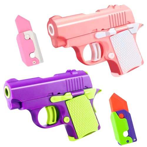 Fidget Toy Pistol, GWAWG 4 stycken Figity Spin fingerspel, Gravity Kniv, skumpistol, 3D-tryckt minipistol leksak, för vuxna barn