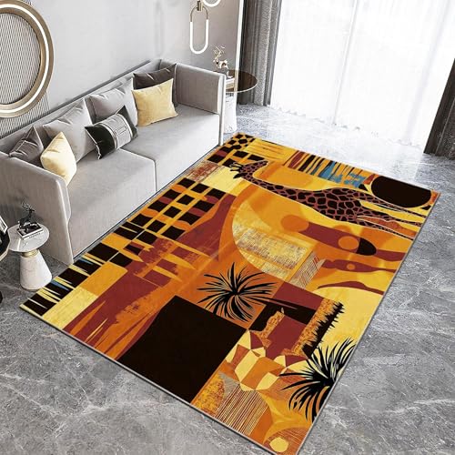 Afrikansk solnedgång giraff mönster matta 3D-tryckt matta tvättbar halkfri yta matta för vardagsrum sovrum soffa golv och badrum lätt att rengöra orange färg 160 x 230 cm