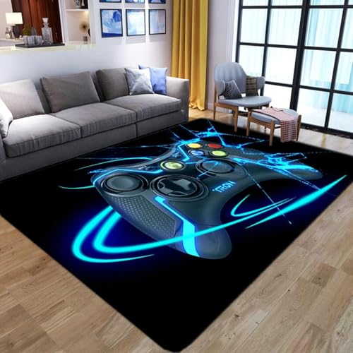 MANGGUO Matta sovrum modern gamer 3D controller vardagsrum matta halkfri graffiti spelkonsol dekoration carpets svart blå stor flanell (blå, 140 x 200 cm)