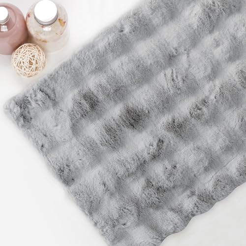 Comart, Mjuk och lurvig matta, 3D-fyrkant design, halkfri undersida, modern, bekväm, för vardagsrum, sovrum, sängmatta, soffa, maskintvättbar, grå 45 x 75 cm