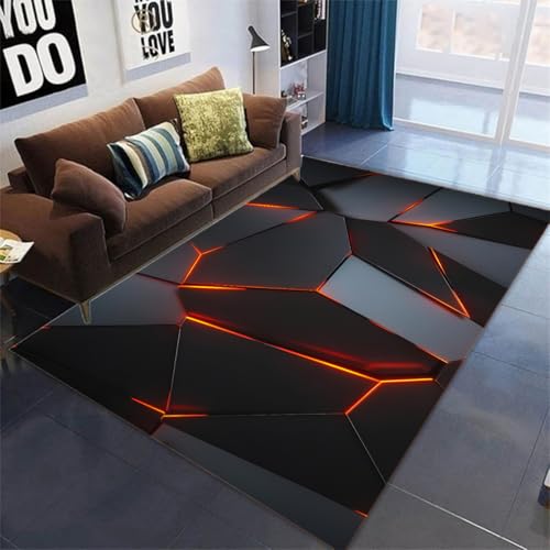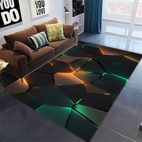 Spelmattor för sovrum tonåring pojke gril barn män färgglad geometrisk vision 3D-tryckt spelstol matta vardagsrum dekor golvmatta halkfri tvättbar mattor dynor svart (färg, 160 x 200 cm)