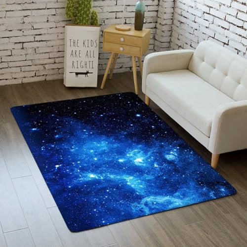 Matta Galaxy Starry Sky Boy och Girl Teen Universe 3D Planet Printing Matta Sovrum Vardagsrum Dekoration Golv Inomhusmatta Tvättbar Blå Lila Anti-slip Matta (Färg 1,120x160cm)