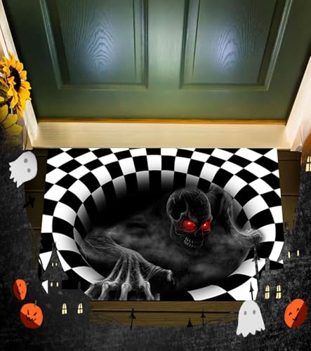 Halloween dörrmatta, 3D stereo vision skelett matta rutig skräck dörrmatta 3D rolig mjuk matta clownfälla mönster golvmatta skrämmande halloween dekoration för vardagsrum sovrum (60 x 40 cm)