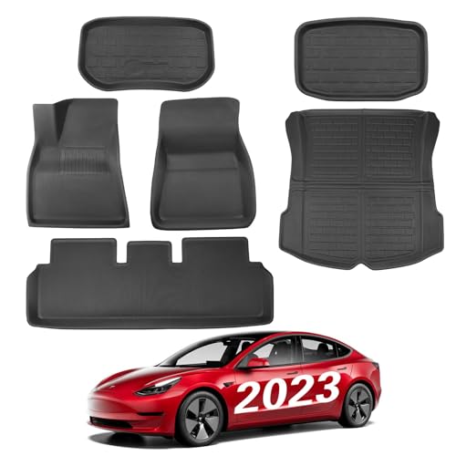 BASENOR 6-delad Fußmatta Set för Tesla Model 3 2021-2023, Allväders 3D Matta Anti-Slip Vattentät Frunk & Kofferraum Matta, Bilinredning Tillbehör