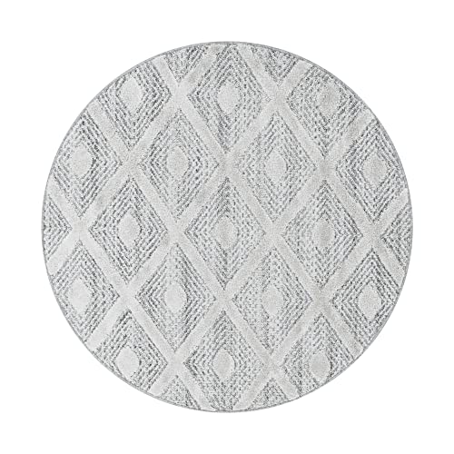 Enyhom Rund matta, vardagsrum, 200 cm, stor fluffig matta med kort lugg, tvättbar, modern matta, 3D-effekt, halkfria mattor för matsal, kök, sovrum, beige