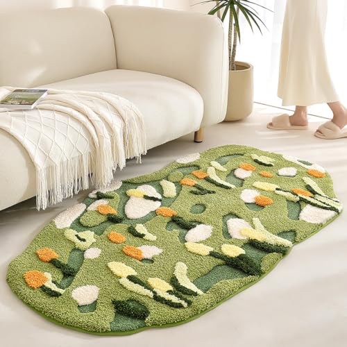 Mossmatta 3D-stereo oregelbunden matta natur blommor tusensköna mossmatta för vardagsrum sovrum hem estetisk dekor golvmatta inomhusgolv plysch lurvig matta halkskydd söta mattor (moss C 89 x 160 cm)