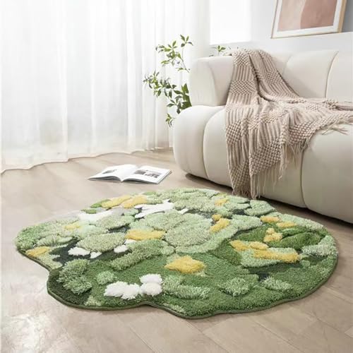 Mossmatta 3D-stereo oregelbunden matta natur blommor tusensköna mossmatta för vardagsrum sovrum hem estetisk dekor golvmatta inomhusgolv plysch lurvig yta matta halkskydd söta mattor (moss L 100 x 105