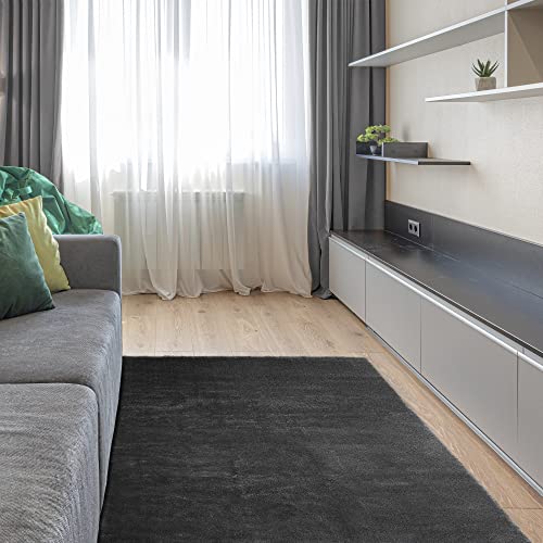 ECOMMERC3 Mjuk - Vardagsrum Medium Antracit 80 x 150 cm Matta med mjuk och vadderad konsistens | Polyester och 3D Backing Halkfri matta | Tvättmaskin tvättbar matta