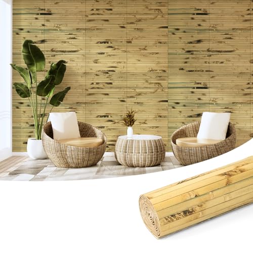 Art3d Naturlig bambu väggpanel för inredning väggdekor, förnybar stavwrap vingpanel för vägg tak möbler skåp kontor, 1122 x 244 cm - ljusbränd