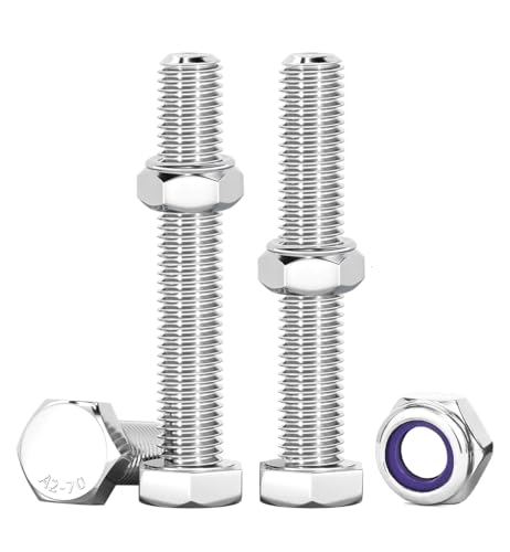 Drenky 10 st M8-skruvmuttrar set, sexkantsskruvar, bultar och muttrar rostfritt stål A2 V2A M8 x 16 mm skruvsortiment självlåsande muttrar för maskiner, möbler, bilar, fartyg, 3D-tryck