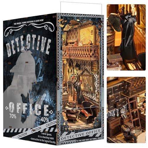 Quanquer book Nook kit detektivkontor med dammskydd miniatyr dockhus bokhylla 3D träpussel Detective Office Booknook med LED-ljus och möbler, kreativitet gåva för vuxna tonåringar