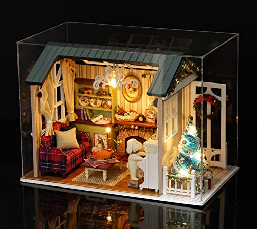 Tiandirenhe Gör-det-själv miniatyrdockhus-kit 1:24 realistisk mini 3D-trä minirum med möbler, LED-lampor, juldekoration, present till tonåringar, vuxna (semestertime)